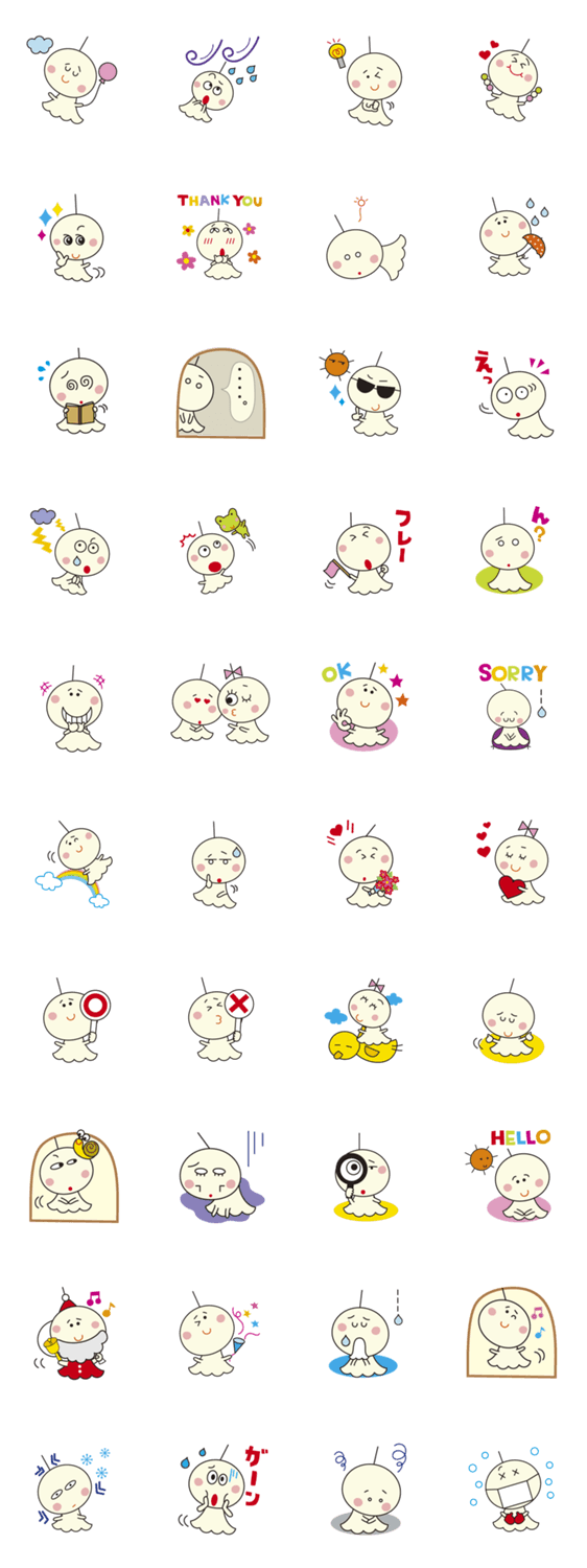 スタンプ説明 てるてる坊主のてるくん。てるくんは恋をしたり笑ったり泣いたり・・・。とても表情豊かな可愛い”てるくん”です。たくさん使って下さいね。