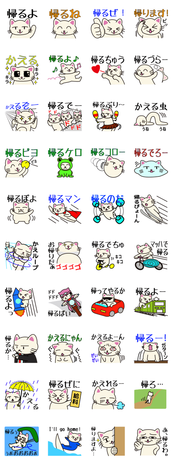 毎日の帰りの連絡。変化をつけたいが迷ってしまう。そんな悩みはこのスタンプで解決!帰るね、だけを40パターン揃えました。