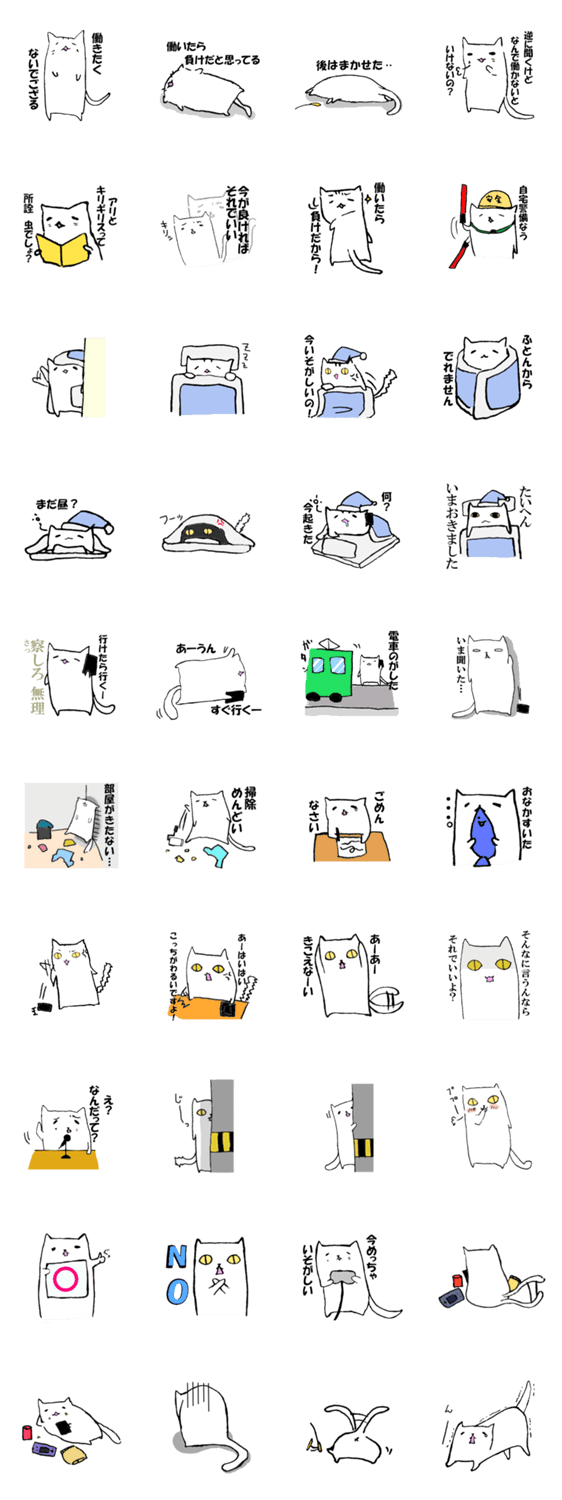 スタンプ説明 働きたくない気持ちや、逆ギレなど色々な気持ちをねこのスタンプで伝えてください!