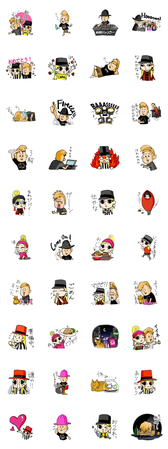 スタンプ説明 カフェバー&サウンドスペース新宿ドゥースラーの店主DJ DONとタナコの公式スタンプ。ベースミュージック好きの皆さんに役立つスタンプも多数!