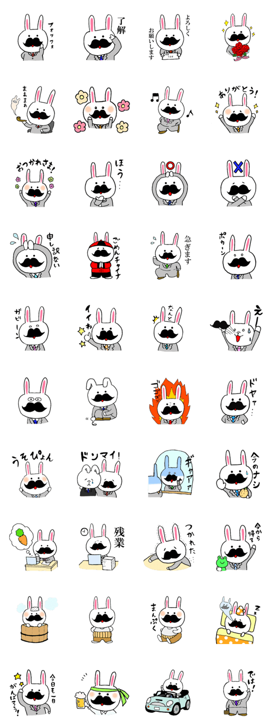 スタンプ説明 温厚でちょっとお茶目なうさぎ係長のスタンプです。