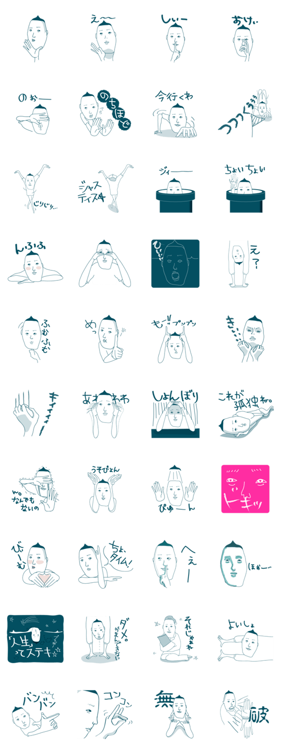 スタンプ説明 「むふふ」といつも微笑む次郎さん。乙女系の次郎さんは手の動きがちょっと大げさなところが魅力的。ちょっとシュールでウザいコメント付次郎さん、使いやすいと評判です。