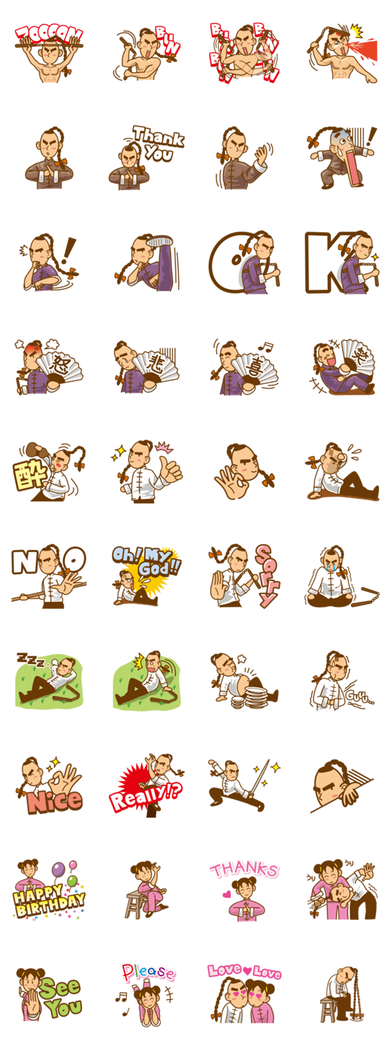 スタンプ説明 カンフーの初心者「リーくん」と「スーちゃん」。毎日つらい練習に耐え、最近どうにか形にはなってきた。そんな二人をおもしろ楽しく使ってね。