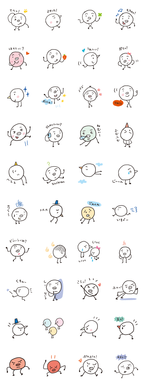 スタンプ説明 まあるいかおの「へんないきもの」のあれやこれやの感情スタンプ! シンプルでストレートでつかいやすいかもよ!