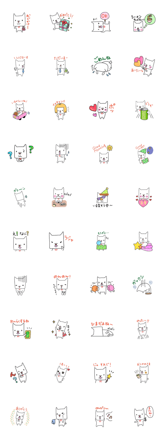 スタンプ説明 おとうふみたいな顔した犬のスタンプです。