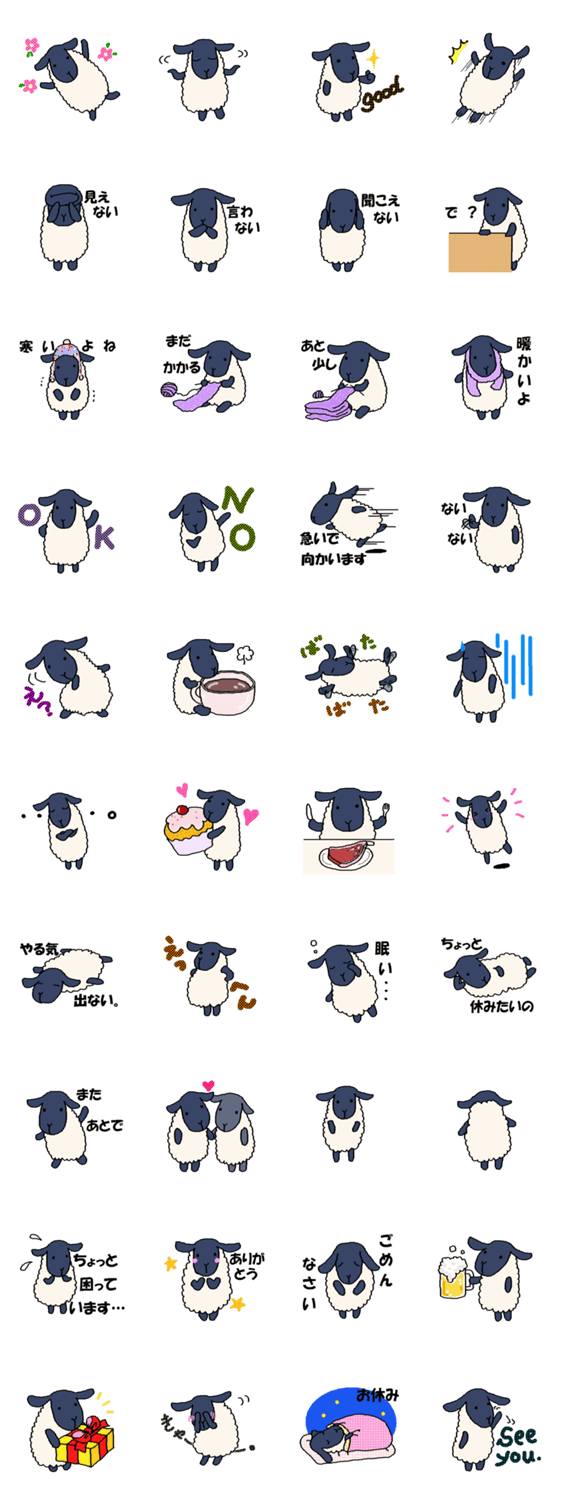 スタンプ説明 サフォーク種の羊です。家族や友達との普段の会話にお使い下さい。絵文字版もあります。