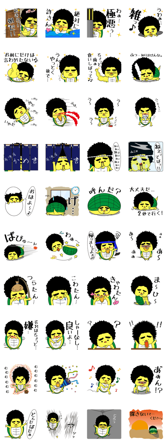 スタンプ説明 何か腹が立つけど、まぁいっかってなる「かめ吉くん」スタンプ。ヤバイ時はこのスタンプでサラッと無かった事にしちゃおう。