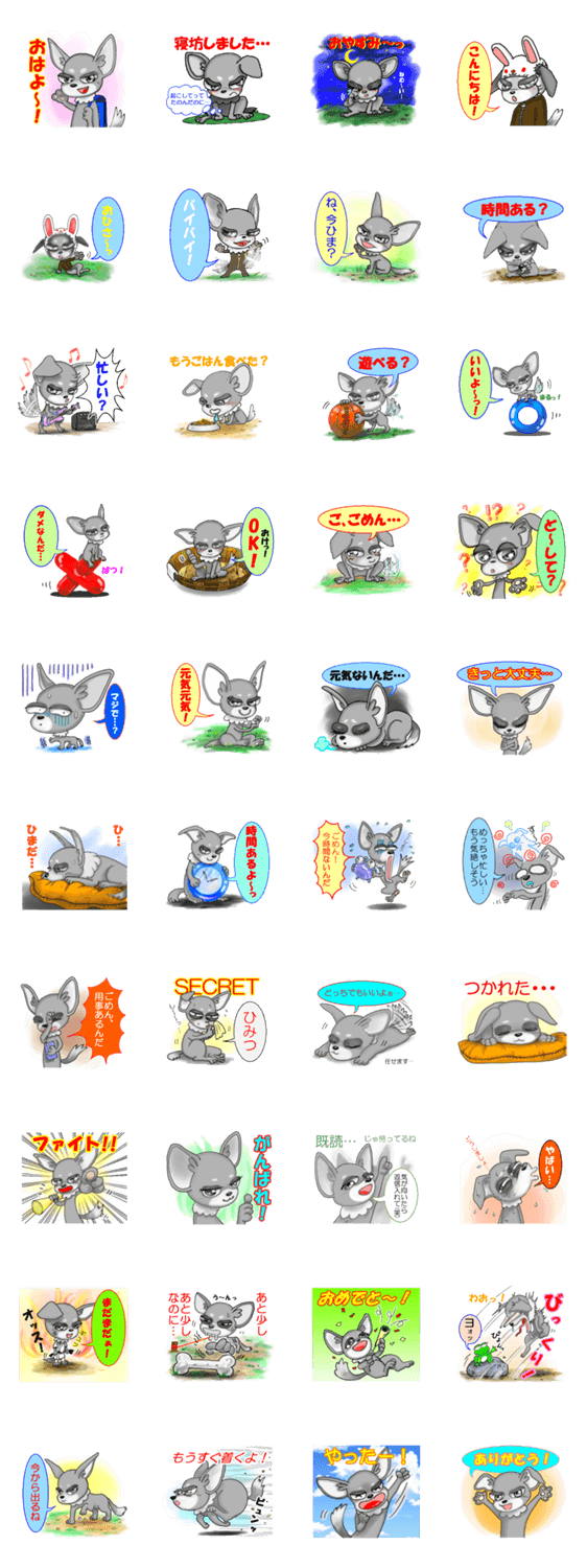 スタンプ説明 生意気で、とってもかわいいチワワの色々な表情の詰まったスタンプです。
