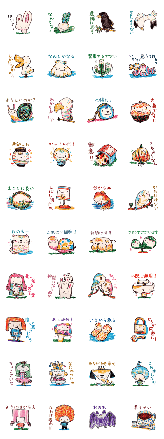 スタンプ名 ペンで描いた仲間たち6。お返事編