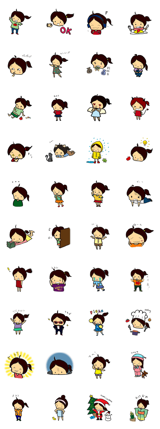 スタンプ説明 あいリンゴはリンゴが大好きな女の子。クリエーターのオリジナルキャラクターあいり×リンゴであいリンゴ可愛がってあげてね