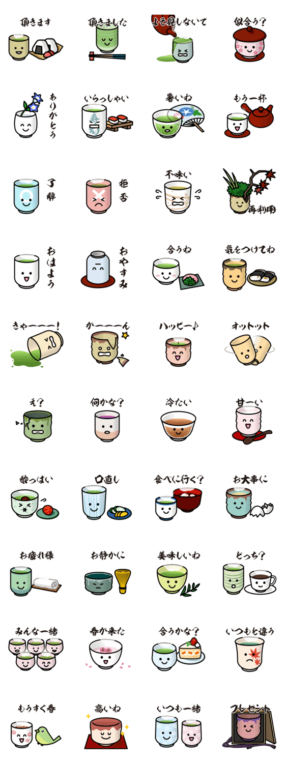スタンプ説明 日本伝統の湯呑み茶碗で皆様を「おもてなし」するスタンプです。