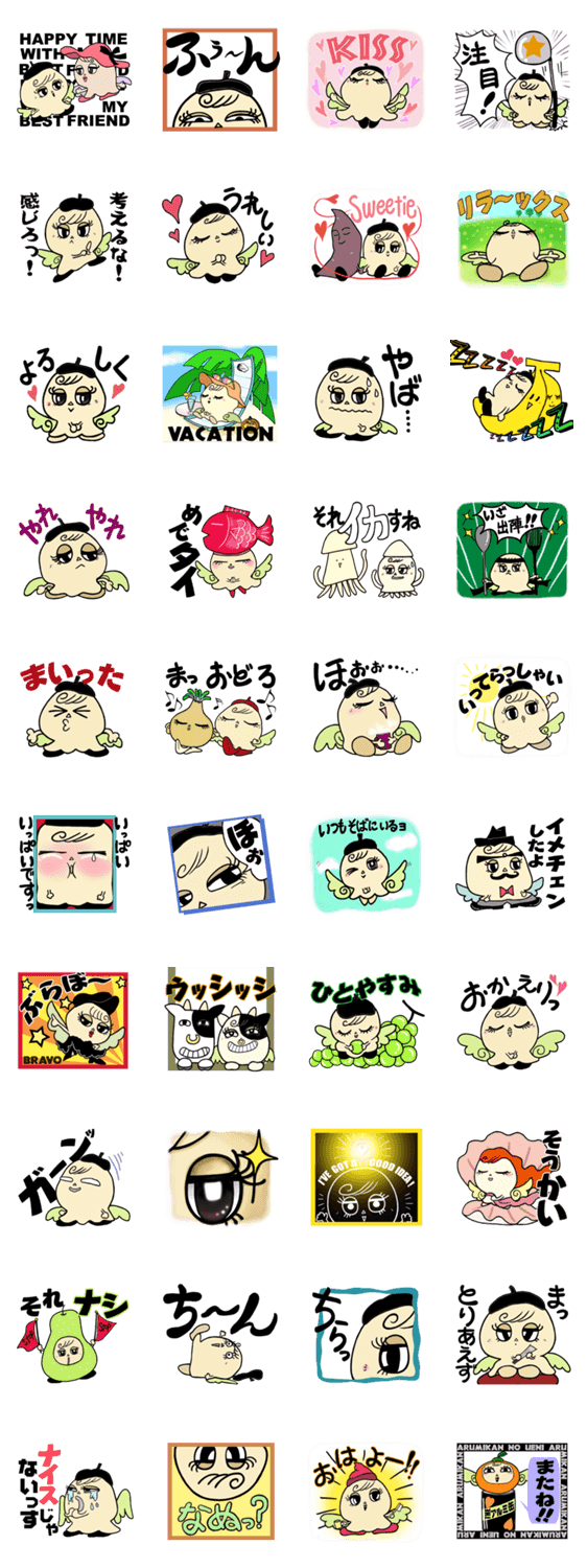 スタンプ説明 ラブリー・マッシュレイ シリーズ2。キノコン惑星から地球に愛を伝えるためにやって来たマッシュレイ。彼女の豊かな表情がみんなをハッピーな気持ちにします!