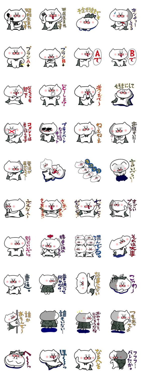 スタンプ説明 ふろしきをまとった白猫の松吉のスタンプ第八弾です。