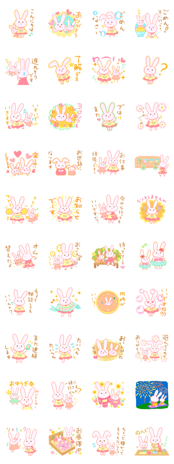 スタンプ説明 うさぎママの日常生活をスタンプにしました。時々子供のミニうさちゃんも登場します。 ママ友やパパ、じいじやばあばにも送れるほっこりかわいい和みスタンプです。