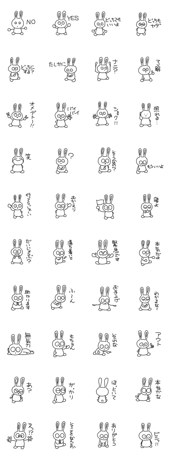 スタンプ説明 あまりウサギっぽくないうさぎだぴょん。脱力系で日常には便利なスタンプです。