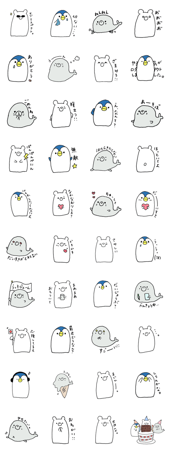 スタンプ説明 さむいところに住む3匹のゆるいスタンプの第2弾です。たくさんつかってね。