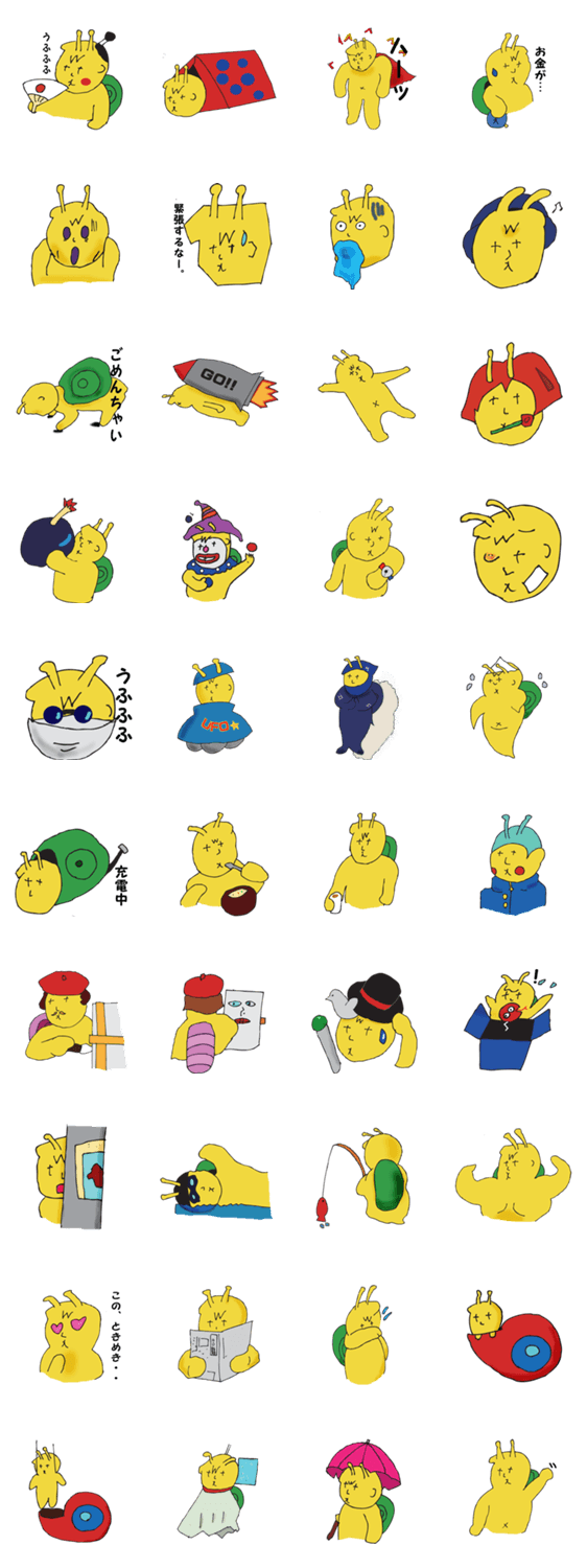 スタンプ説明 かたつむりのキャラクター片田つむりくん第二弾が愉快な表情を見せるスタンプです。