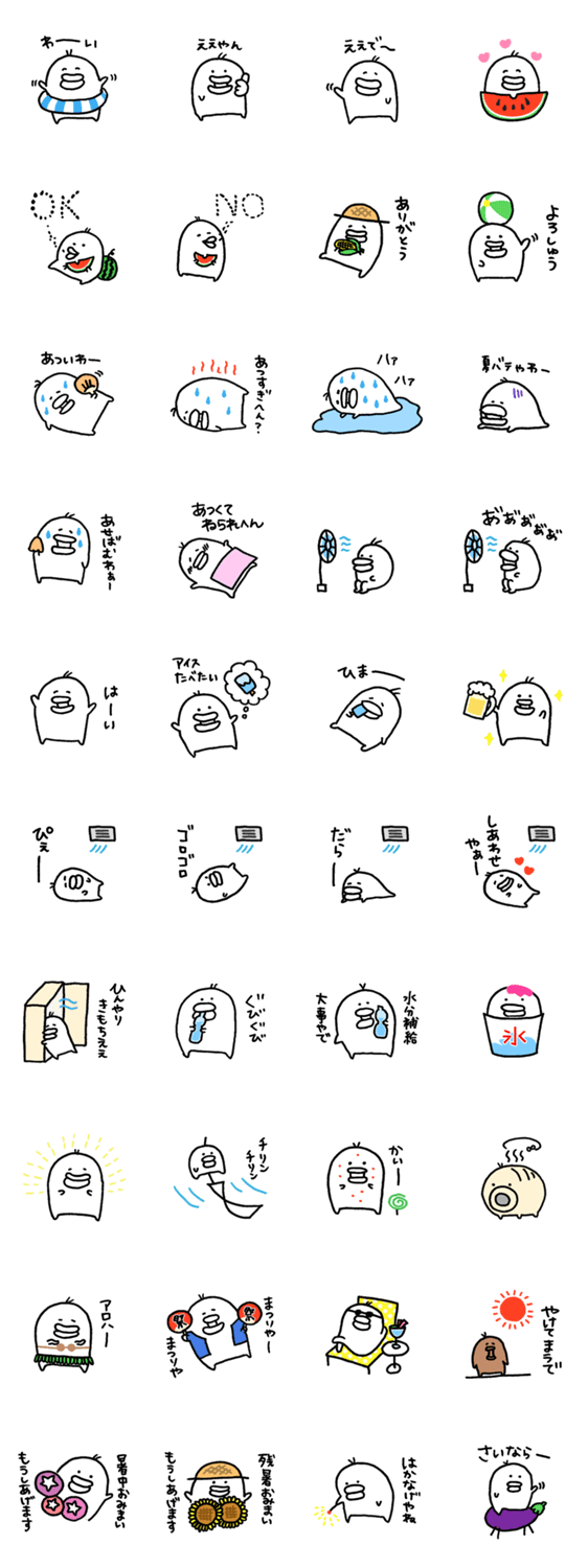 スタンプ説明 暑いのきらいマンは暑いのが嫌い。暑さに負けず頑張って。