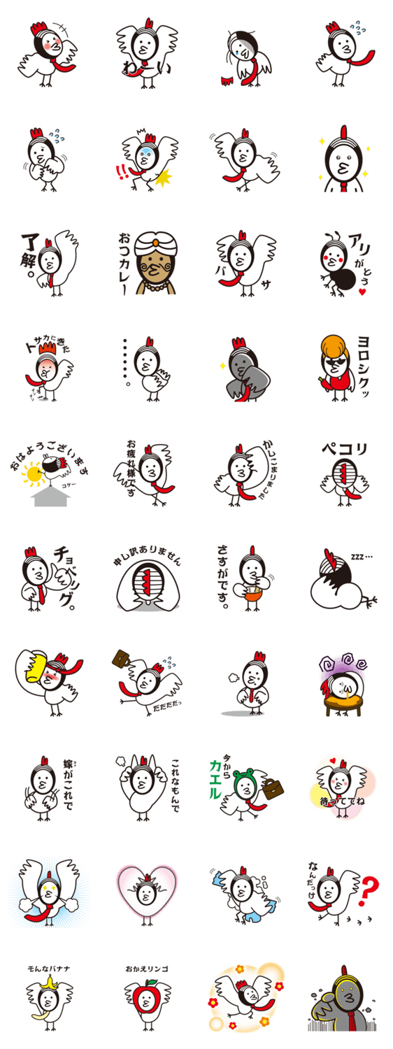 スタンプ説明 がブ吉スタンプ第二弾!がブ吉は41歳のサラリーマン。ゆるくてオヤジな鶏LIFE。