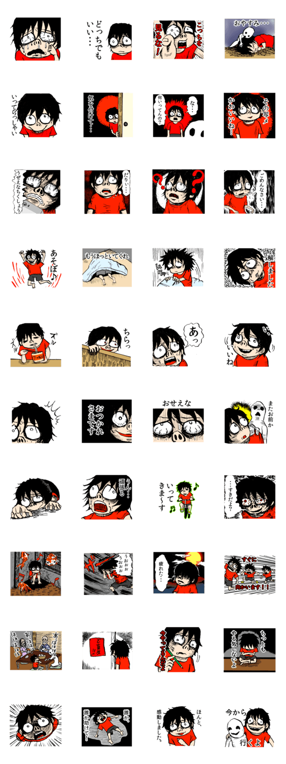 きもかわホラーなまもるくんスタンプ。こわい系、ネタ系、面白系も充実!セリフ入りで日常会話にも使えるよ!