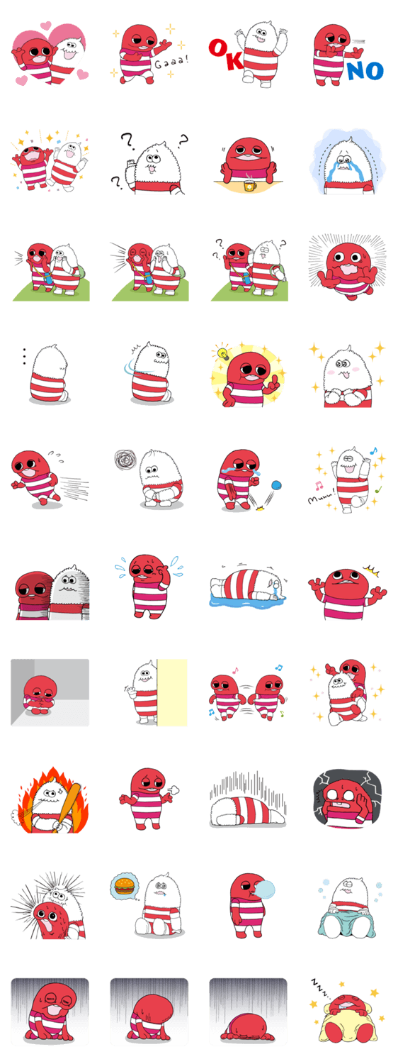 スタンプ説明 “beポンキッキーズ” から生まれた新キャラクター。いつも無邪気なガーとそれを見守るムーのコンビ。2人はガチャピン・ムックの友達だよ♪ 日常の会話に楽しく使ってね!