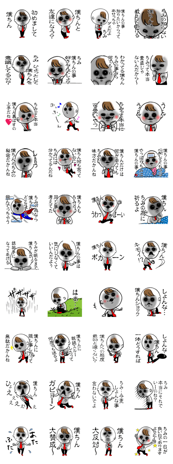 僕ちん「ちみの為のキモカワ僕ちんです。僕ちんと友だちになると、きっといいことがあるよ。決して僕ちんを無視しない方がいいと思うな。」