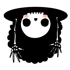 日常的に使えるフレーズや表情を、アフロヘアーのガイコツとシンプルな英語と日本語のカタカナで表現しています。