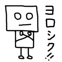 スタンプ説明 ロボットみたいな落書きから生まれたスタンプです。家族や友達との日常会話で使ってください。