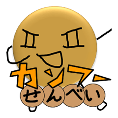 スタンプ説明 カンフーをする部族のせんべいです。南部せんべいやみずあめせんべい、ぬれせんべいも出てきます。