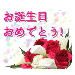 本物の花を添えて送る誕生日用のスタンプです。お誕生日おめでとう・Happy Birthday・素敵な一年になりますように! etc. 写真使用