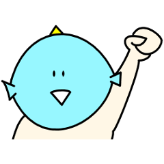 スタンプ説明 マイペースで穏やかな魚人みーくんのスタンプ。笑顔で一言!