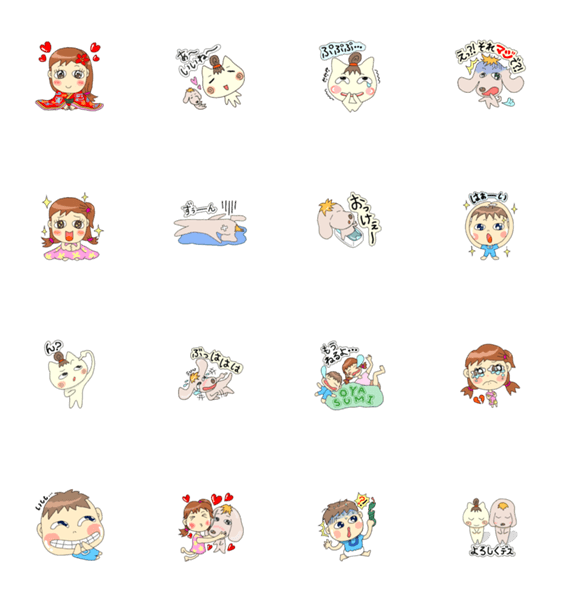 元気で楽しいきになるファミリースティッカー。 パパはワンちゃん、ママは猫ちゃん、そしてかわいい二人の子供達