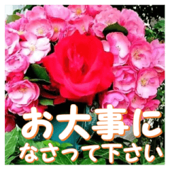 スタンプ説明 庭で育てた薔薇Angelaが咲きました。 あなたの心へ、そして、あなたの親しい人へ薔薇の花をお届けします。日常の挨拶が華やかになりますように。
