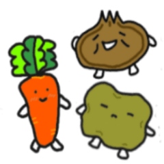 野菜や果物をかわいいキャラクターにしてみました。 みんな一人一人違う個性や味がある愉快な仲間たちが集まりました。