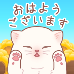 スタンプ説明 可愛いお花と白いブリティッシュショートヘアーの子猫が飛び出すスタンプです♪敬語で毎日誰にでも使えます。