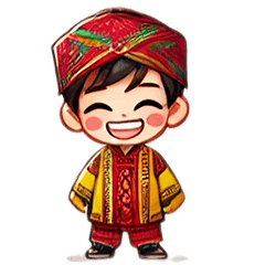 スタンプ説明 ファンシーな国際衣装を着た可愛い男の子。チャットに世界的な魅力を加え、感情を表現するのに最適!