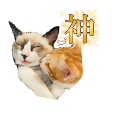 シャムミックス、ハチワレはっくんと茶トラ、茶白はるちゃんの仲良し兄弟スタンプです。