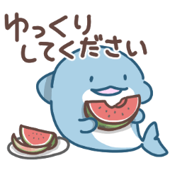 海の仲間たちから、バンドウイルカとベルーガのいるかのコンビです。スイカや扇風機など、夏向きなスタンプです。