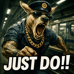 スタンプ説明 ムキムキ駅員カンガルー、爆誕!サングラスで乗車チェックも全力!迫力と笑い満点のスタンプ!