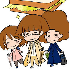 スタンプ説明 家族で帰省!バスや新幹線、旅の準備やワクワクの出発がスタンプに!荷造りからサンドイッチおいしいね、乗り物酔いまでを描いたモナモナキッチン帰省出発編の第1弾です。