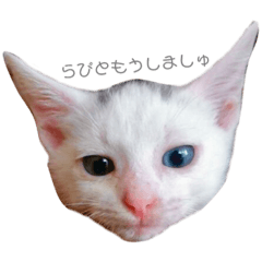 スタンプ説明 我が家のプリンス。ビビリで甘えたなオッドアイ、らびの日常。