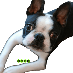 スタンプ説明 表情や仕草がキュートなボストン・テリア (Boston terrier)♂のバビ君 です♪
