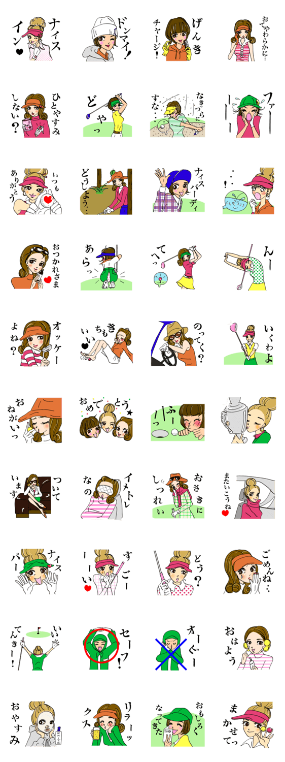 オシャレで仲良し女子のゴルフストーリー。日常でも使える明るく可愛い、癒されるスタンプです。