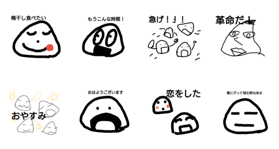 普通のスタンプに飽きてきた人にはこれ。おにぎりさん達が話を繋げてくれることでしょう。