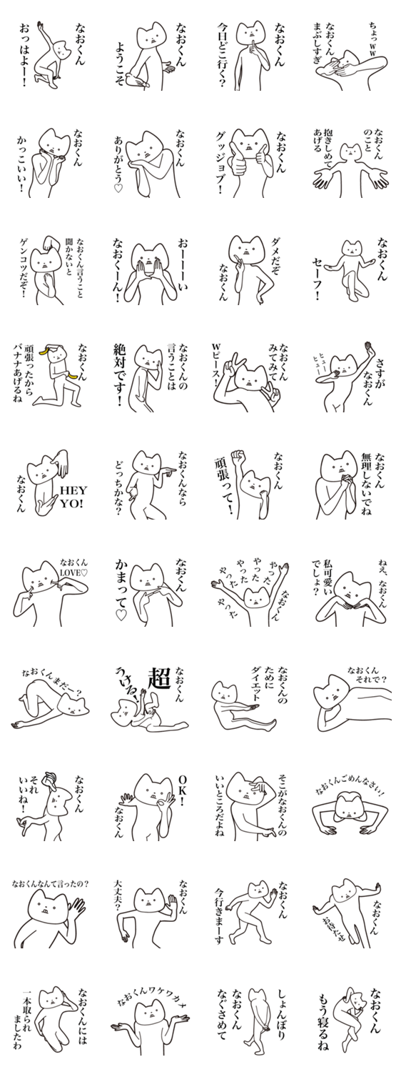 ナオくん(なおき、なおと、なおや、なおゆき、なおひろ、なおみち、なおひこ、なおし、なおたか、なおよし、なおまさ、なおちゃん)に送るしゃくれねこスタンプ