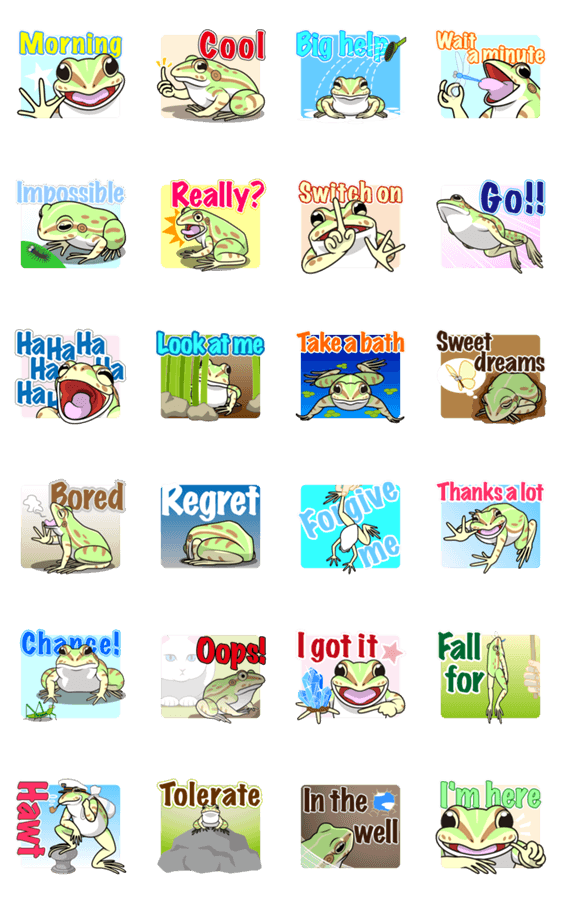 トノサマガエルのケロやんが、あなたのラインで言いたい放題。 英語版【24個】