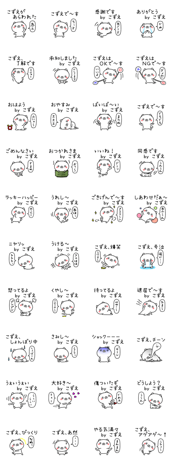 梢、梢枝、梢恵、こず恵、こず江…、全国の「コズエ」さん専用の猫キャラ名前スタンプ、日常会話の基本セットです。友だちとお揃いで使える「ちゃんねこシリーズ」です。