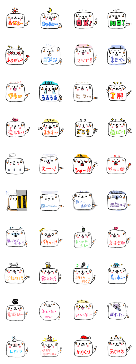 キューブ型のゆるい犬「キューブけん」の手描きスタンプ♪