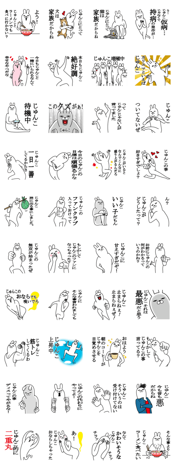 じゅんこちゃんが使う面白スタンプ。順子、潤子、淳子、純子、詢子、絢子、隼子、じゅん子など全国のジュンコが付く人専用のスタンプです