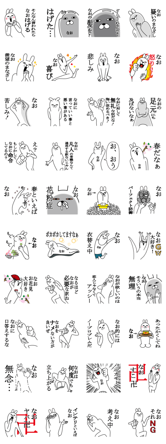 なおさんが使うスタンプ。なおこ,なおみ,なおき,なおと,なおゆき,なおや,直子,尚子,奈央子,奈緒子,修子,直美,尚美,奈緒美,尚斗,直哉など全国のなおがつく人専用のスタンプ